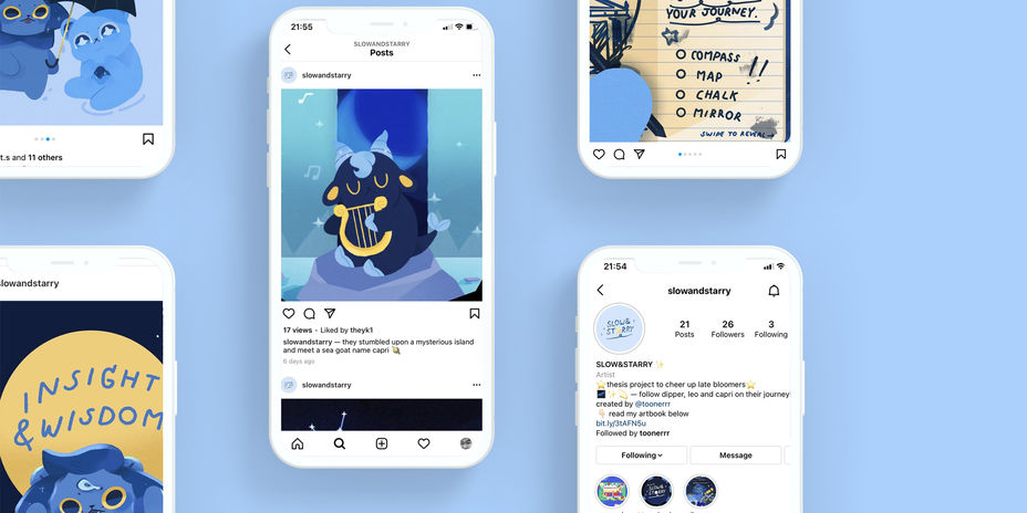 Hello, my thesis project 'slow & starry' is a campaign via Instagram that aims to cheer up late bloomers and to say that late success isn't such a bad thing. I hope my content gives the fire to everyone to do what they love. thank you very much!